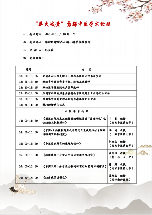 校庆系列学术活动—“薪火岐黄”鸢都中医学术论坛